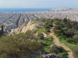 Хорошая погода. Опять поднимаюсь на холм Ликавитос, оттуда мимо Акрополя иду
